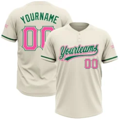Custom Cream Pink-Kelly Green Two-Button Unisex Softball Jersey