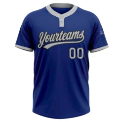 Custom Royal Gray-Black Two-Button Unisex Softball Jersey