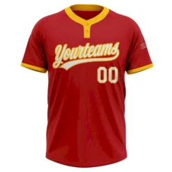 Custom Red White-Yellow Two-Button Unisex Softball Jersey