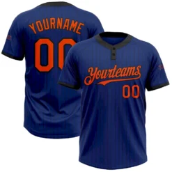 Custom Royal Black Pinstripe Orange Two-Button Unisex Softball Jersey