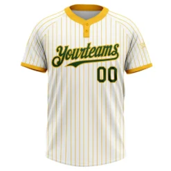 Custom White Gold Pinstripe Green Two-Button Unisex Softball Jersey