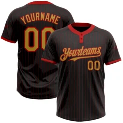 Custom Black Red Pinstripe Old Gold Two-Button Unisex Softball Jersey