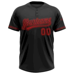 Custom Black Red Two-Button Unisex Softball Jersey