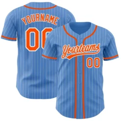 Custom Powder Blue White Pinstripe Orange Authentic Baseball Jersey