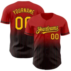 Custom Red Pinstripe Gold-Black Authentic Fade Fashion Baseball Jersey