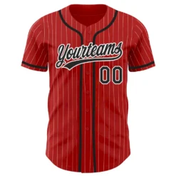 Custom Red White Pinstripe Black Authentic Baseball Jersey