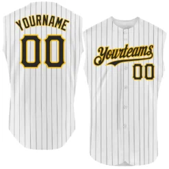 Custom White Black Pinstripe Gold Authentic Sleeveless Baseball Jersey