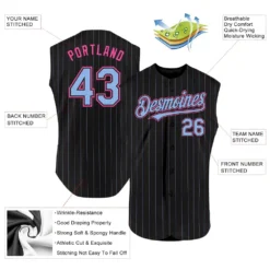 Custom Black Light Blue Pinstripe Pink Authentic Sleeveless Baseball Jersey