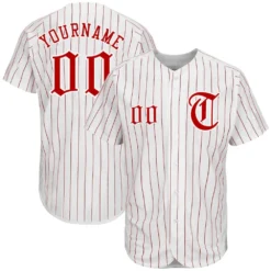 Custom White Red Pinstripe Red-White Authentic Baseball Jersey