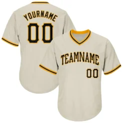 Custom Cream Black-Gold Authentic Throwback Rib-Knit Baseball Jersey Shirt