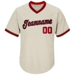 Custom Cream Red-Black Authentic Throwback Rib-Knit Baseball Jersey Shirt