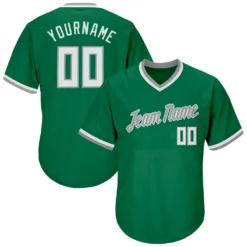 Custom Kelly Green White-Gray Authentic Throwback Rib-Knit Baseball Jersey Shirt