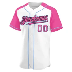 Custom White Pink Black-Light Blue Authentic Raglan Sleeves Baseball Jersey