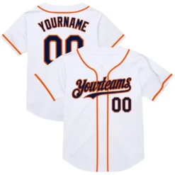 Custom White Navy-Orange Mesh Authentic Throwback Baseball Jersey