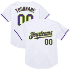 Custom White Purple-Neon Green Mesh Authentic Throwback Baseball Jersey