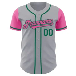 Custom Gray Pink-Kelly Green Authentic Two Tone Baseball Jersey