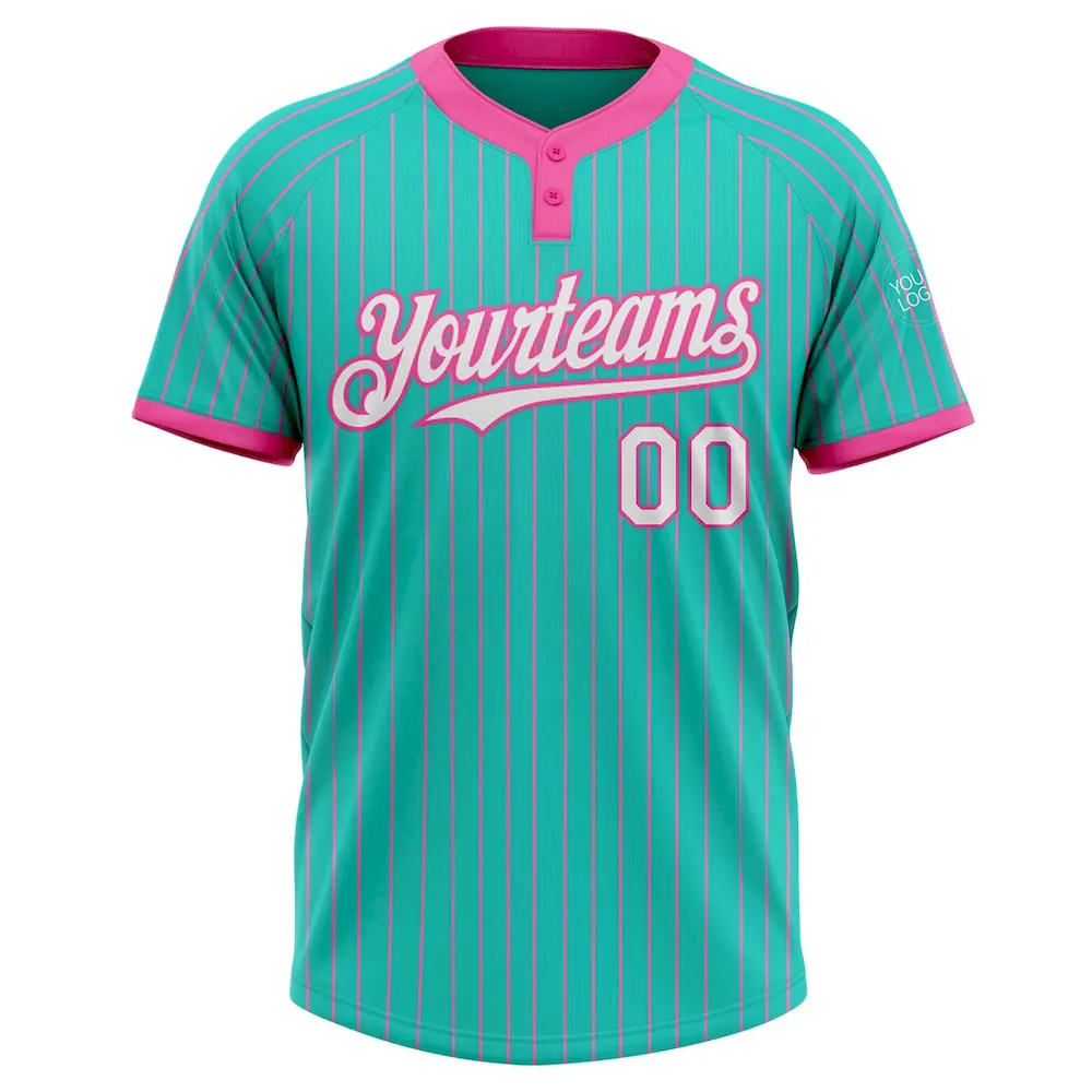 Custom Aqua Pink Pinstripe White Two-Button Unisex Softball Jersey