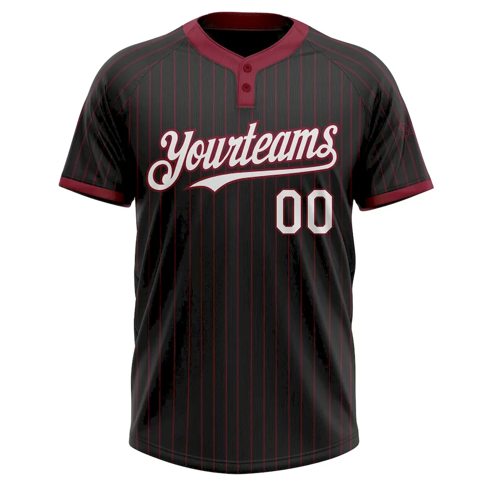 Custom Black Crimson Pinstripe White Two-Button Unisex Softball Jersey
