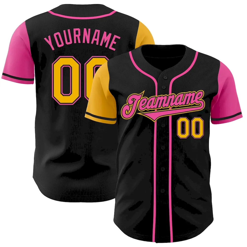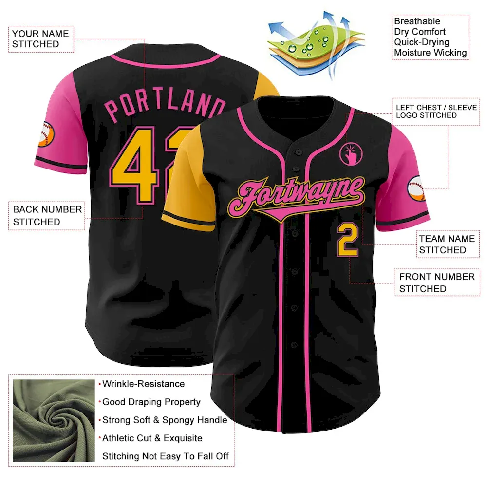 Custom Black Gold-Pink Authentic Two Tone Baseball Jersey