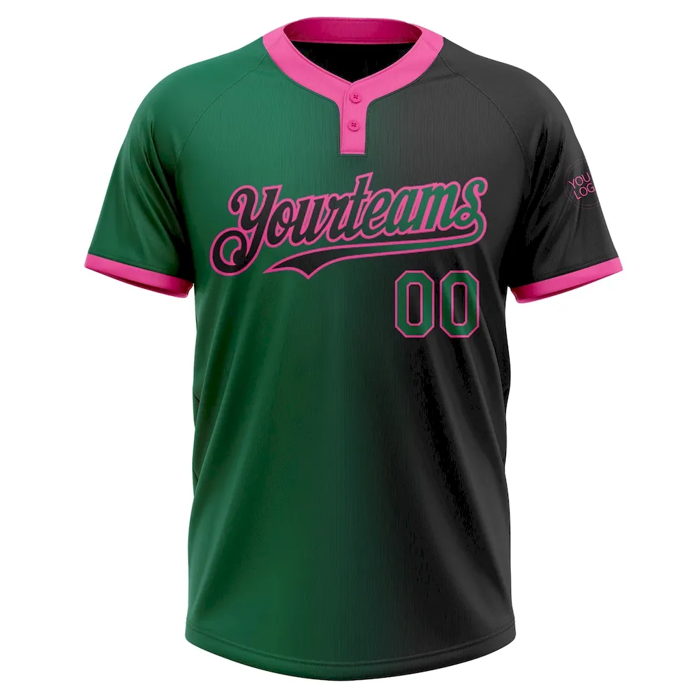 Custom Black Kelly Green-Pink Gradient Fashion Two-Button Unisex Softball Jersey