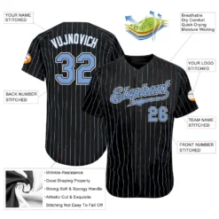 Custom Black Light Blue Pinstripe Light Blue-White Authentic Baseball Jersey