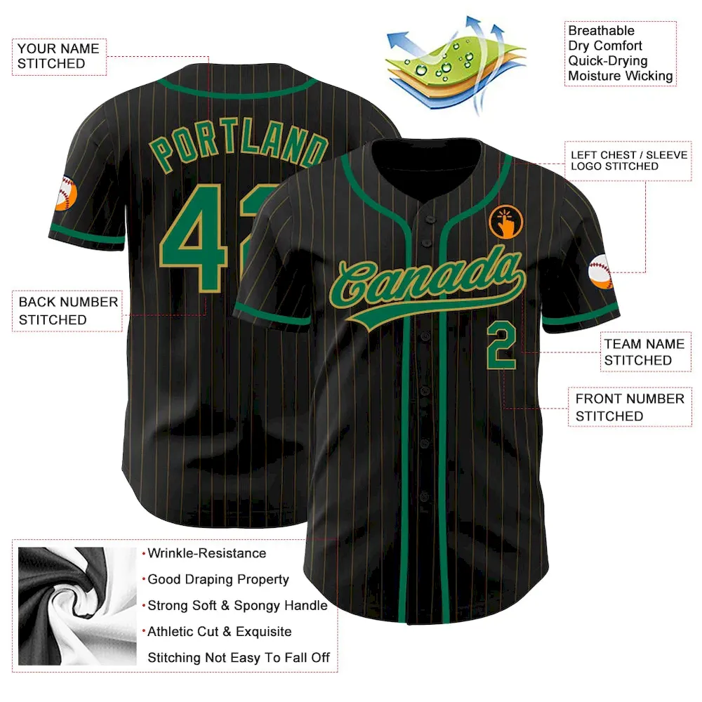 Custom Black Old Gold Pinstripe Kelly Green Authentic Baseball Jersey