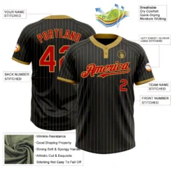Custom Black Old Gold Pinstripe Red Two-Button Unisex Softball Jersey
