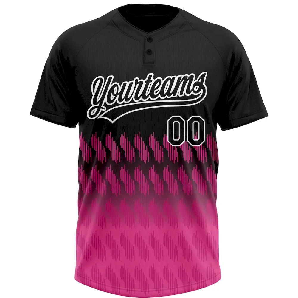 Custom Black Pink-White 3D Pattern Lines Two-Button Unisex Softball Jersey