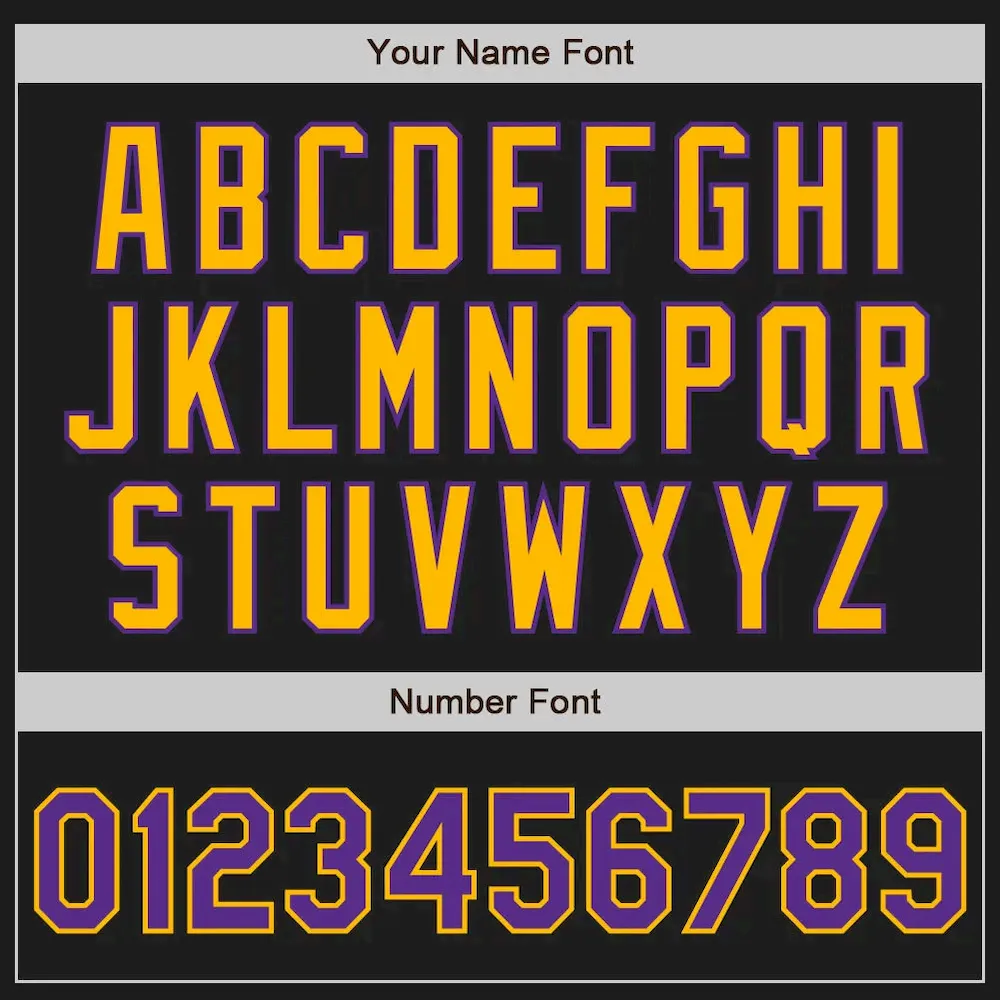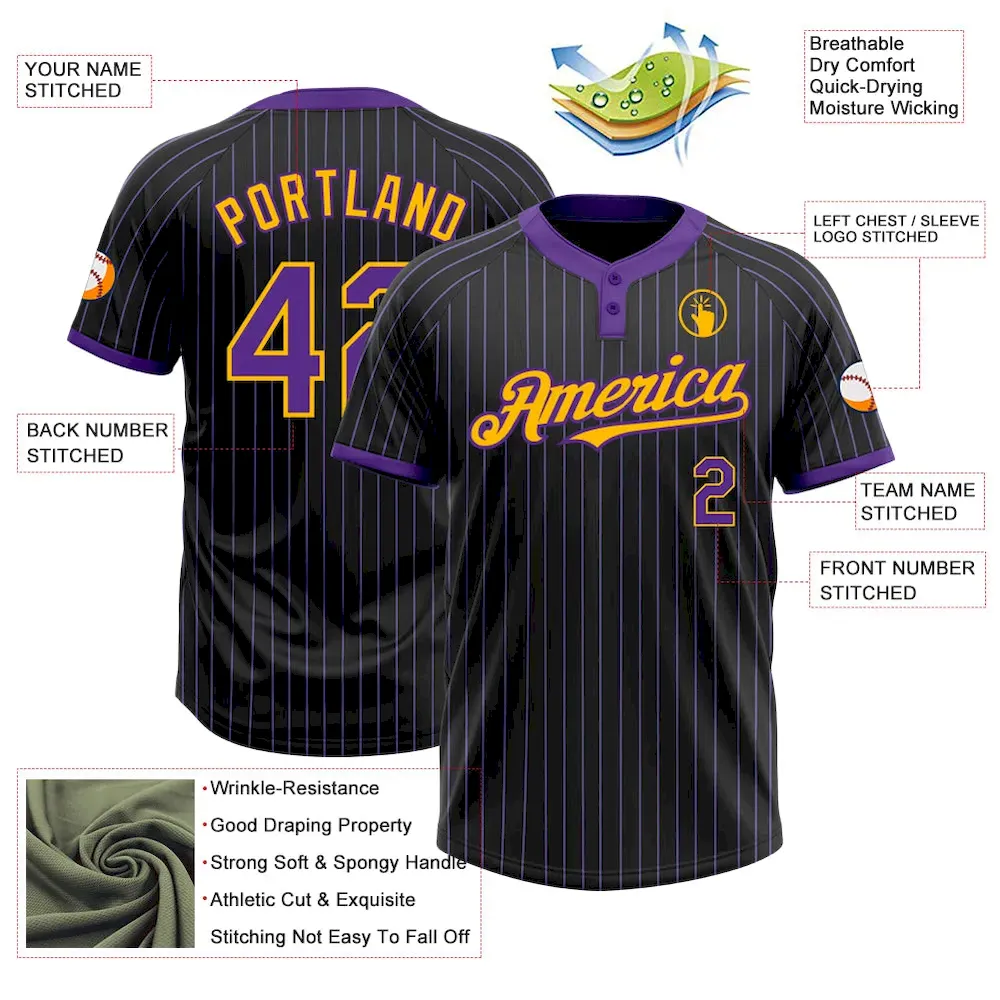 Custom Black Purple Pinstripe Gold Two-Button Unisex Softball Jersey