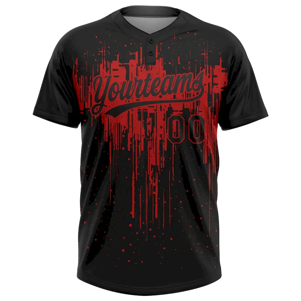 Custom Black Red 3D Pattern Dripping Splatter Art Two-Button Unisex Softball Jersey