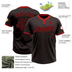 Custom Black Red Pinstripe Red Two-Button Unisex Softball Jersey