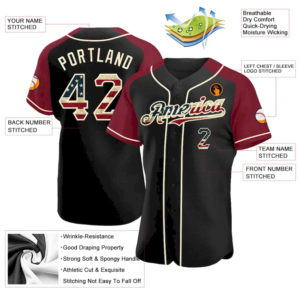 Custom Black Vintage USA Flag Crimson-Cream Authentic Raglan Sleeves Baseball Jersey