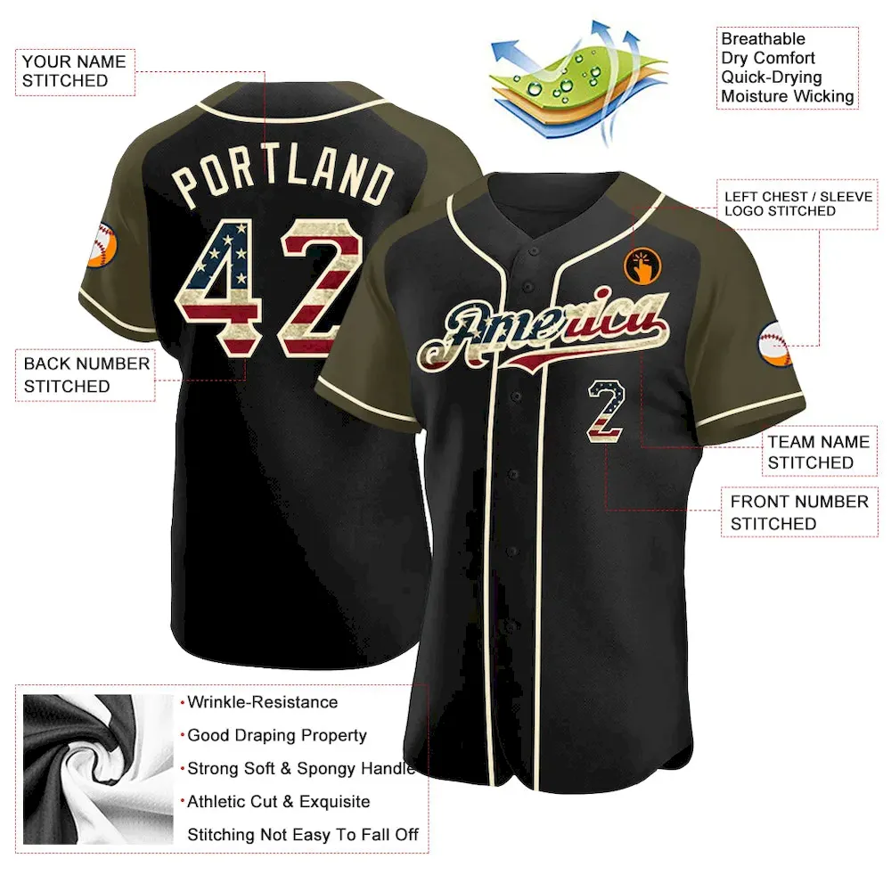 Custom Black Vintage USA Flag Olive-Cream Authentic Raglan Sleeves Baseball Jersey