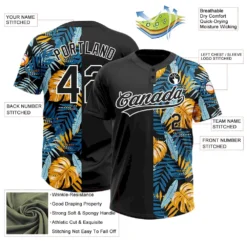 Custom Black White 3D Pattern Hawaii Tropical Leaves Two-Button Unisex Softball Jersey