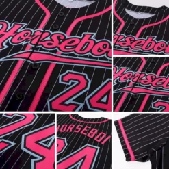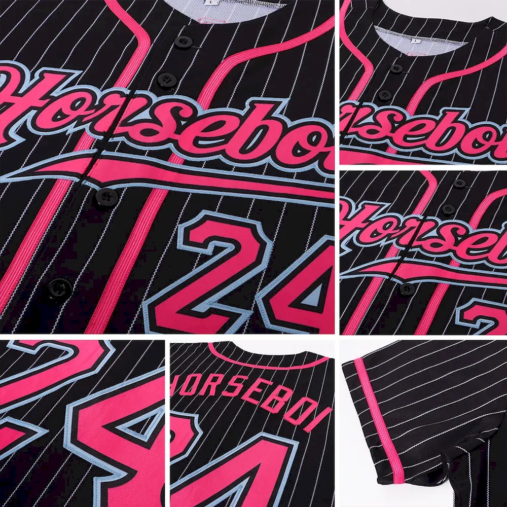 Custom Black White Pinstripe Pink-Light Blue Authentic Baseball Jersey
