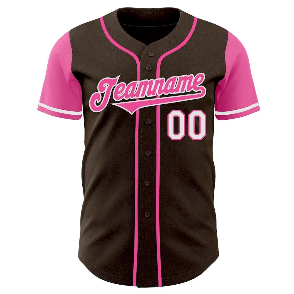 Custom Brown Pink-White Authentic Two Tone Baseball Jersey