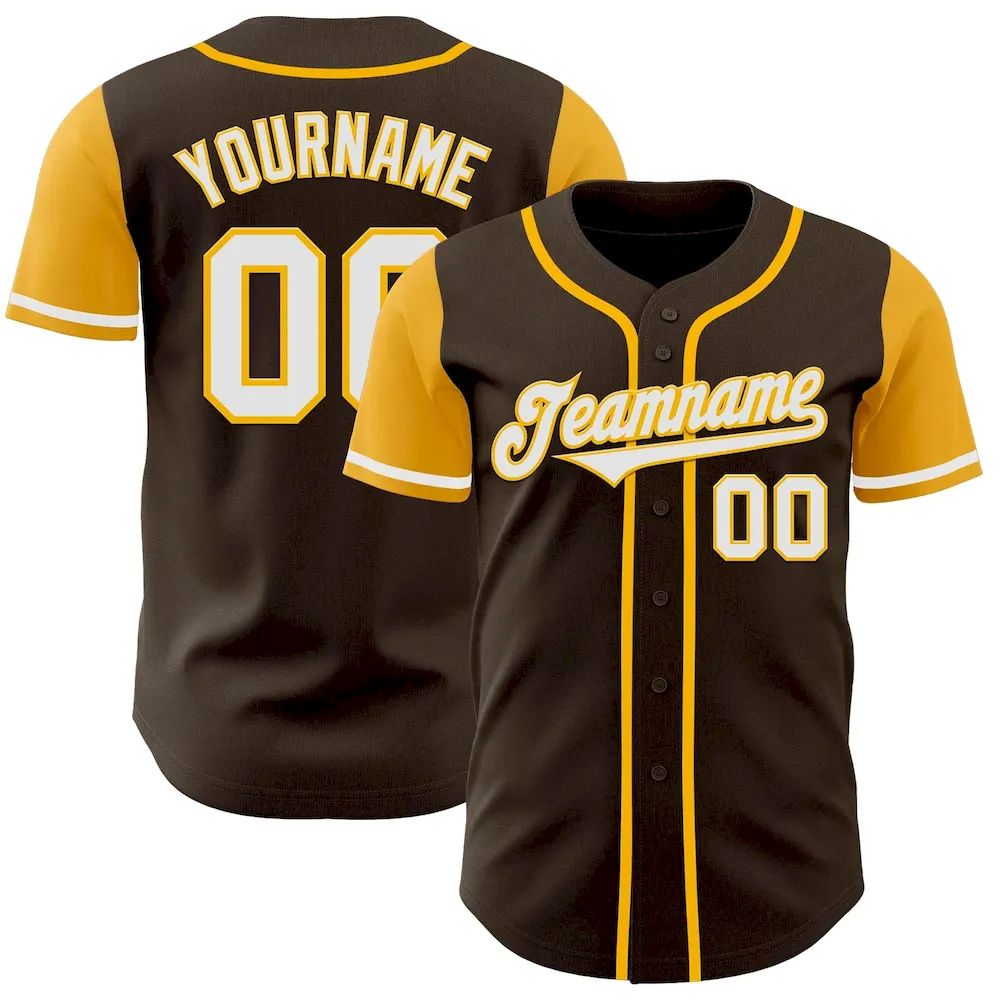 Custom Brown White-Gold Authentic Two Tone Baseball Jersey