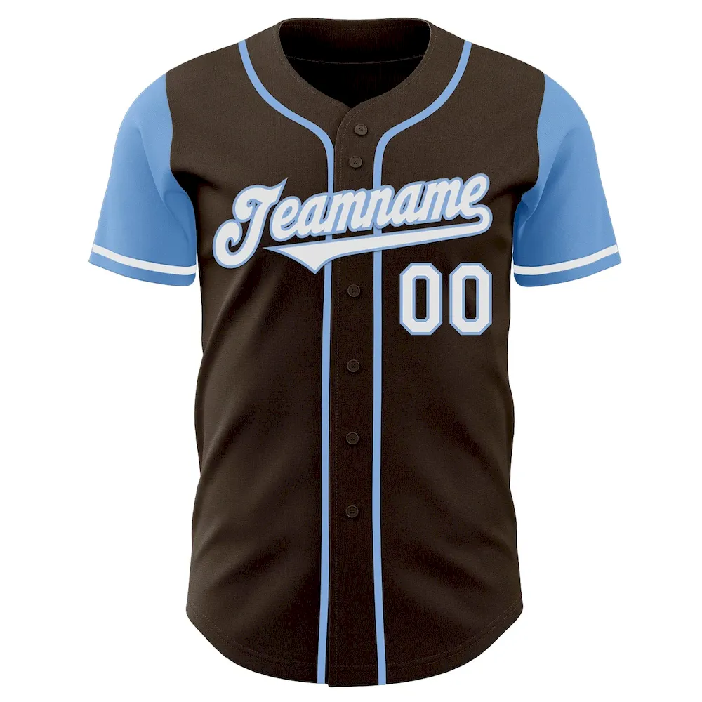 Custom Brown White-Light Blue Authentic Two Tone Baseball Jersey