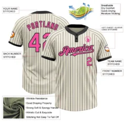 Custom Cream Black Pinstripe Pink Two-Button Unisex Softball Jersey