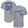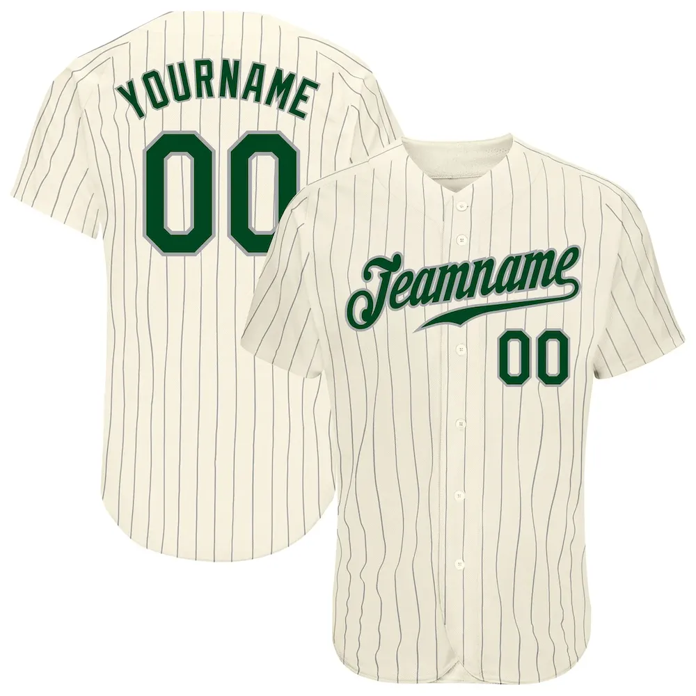 Custom Cream Gray Pinstripe Green-Gray Authentic Baseball Jersey