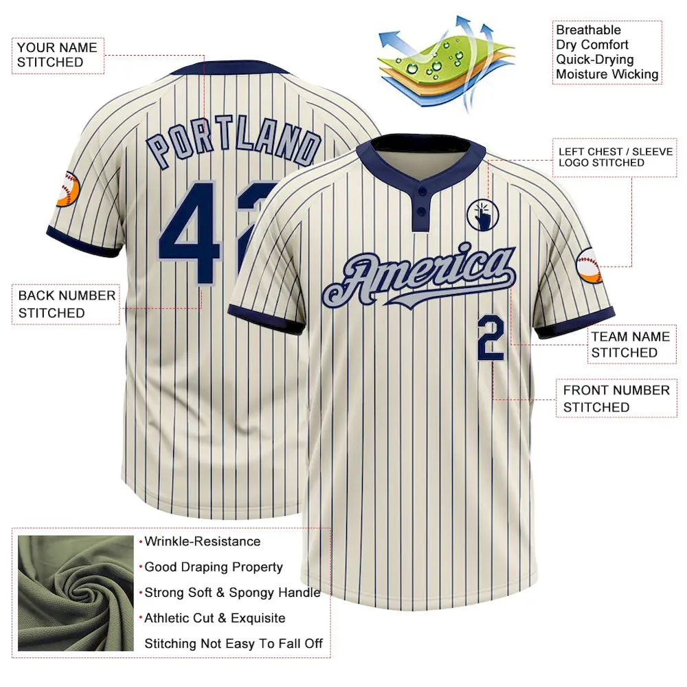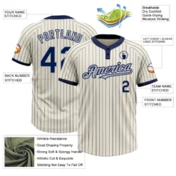 Custom Cream Navy Pinstripe Gray Two-Button Unisex Softball Jersey