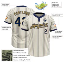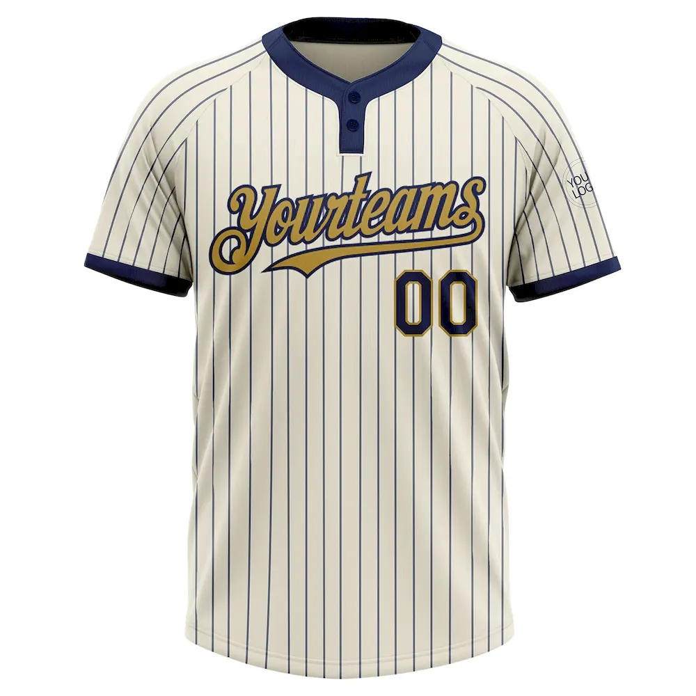 Custom Cream Navy Pinstripe Old Gold Two-Button Unisex Softball Jersey