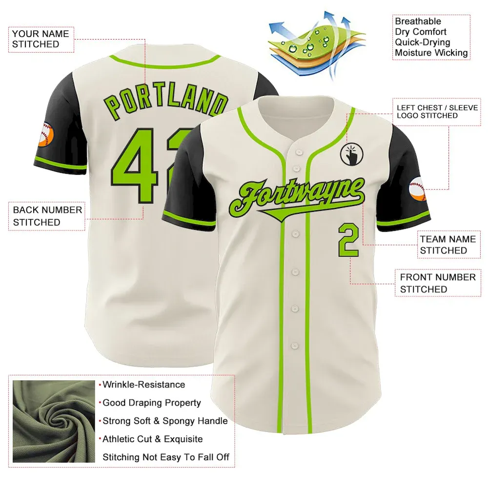 Custom Cream Neon Green-Black Authentic Two Tone Baseball Jersey
