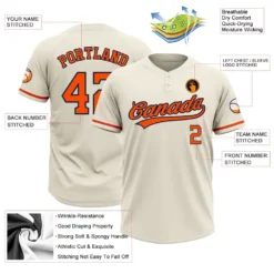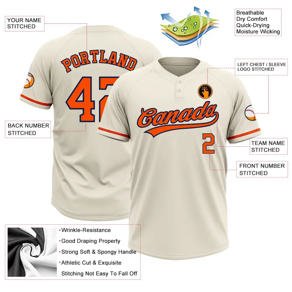 Custom Cream Orange-Navy Two-Button Unisex Softball Jersey