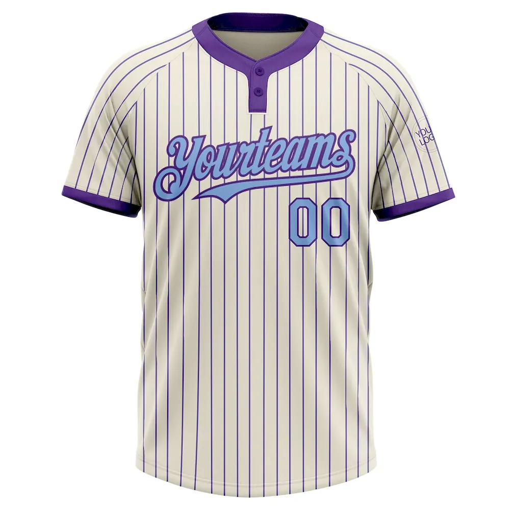 Custom Cream Purple Pinstripe Light Blue Two-Button Unisex Softball Jersey