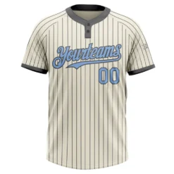 Custom Cream Steel Gray Pinstripe Light Blue Two-Button Unisex Softball Jersey