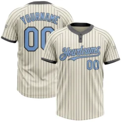 Custom Cream Steel Gray Pinstripe Light Blue Two-Button Unisex Softball Jersey