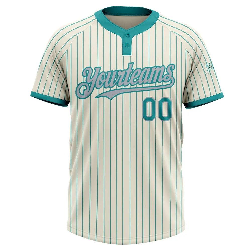 Custom Cream Teal Pinstripe Gray Two-Button Unisex Softball Jersey
