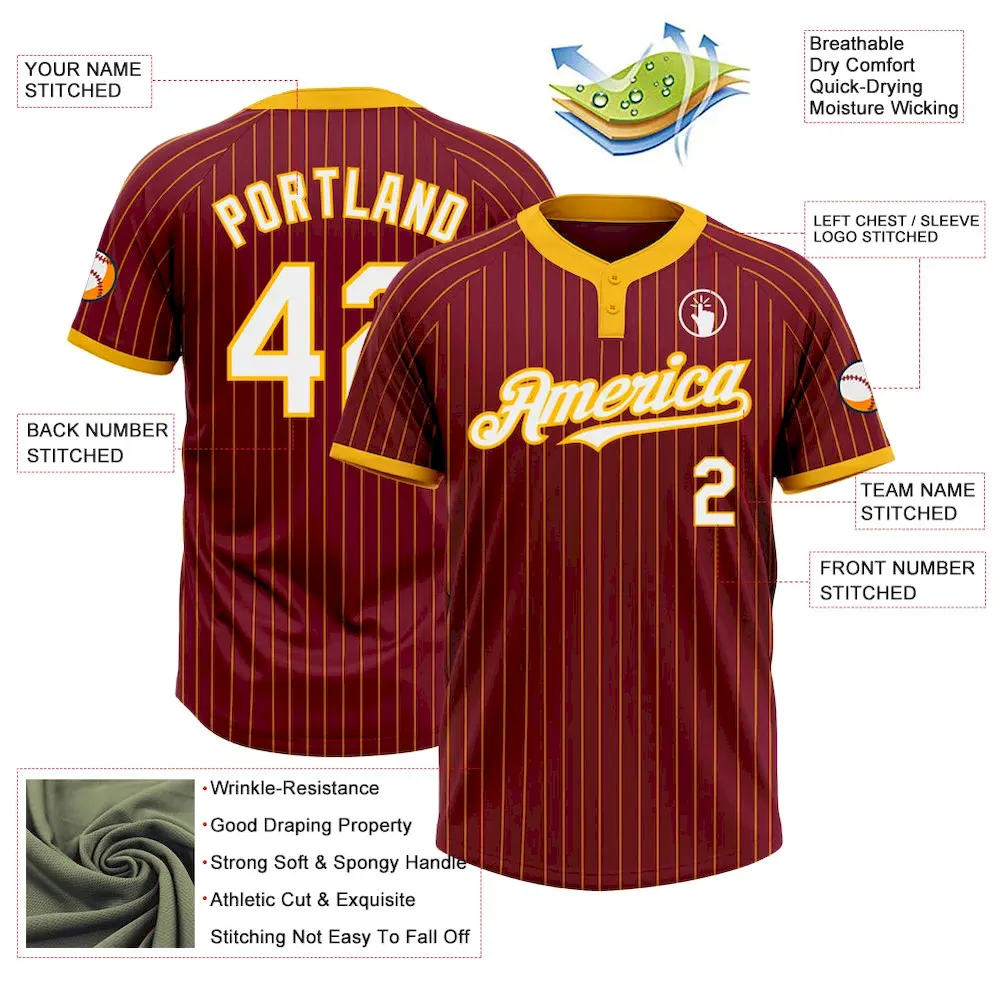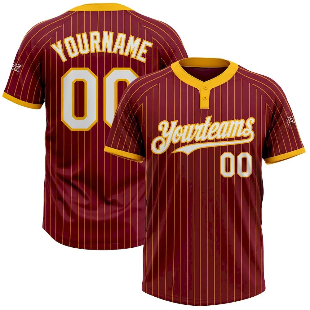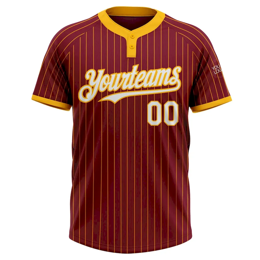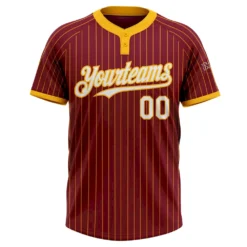 Custom Crimson Gold Pinstripe White Two-Button Unisex Softball Jersey