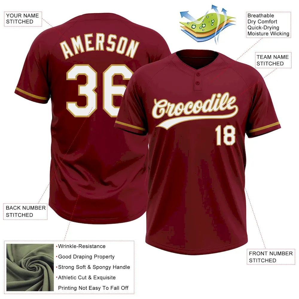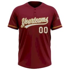 Custom Crimson White-Old Gold Two-Button Unisex Softball Jersey